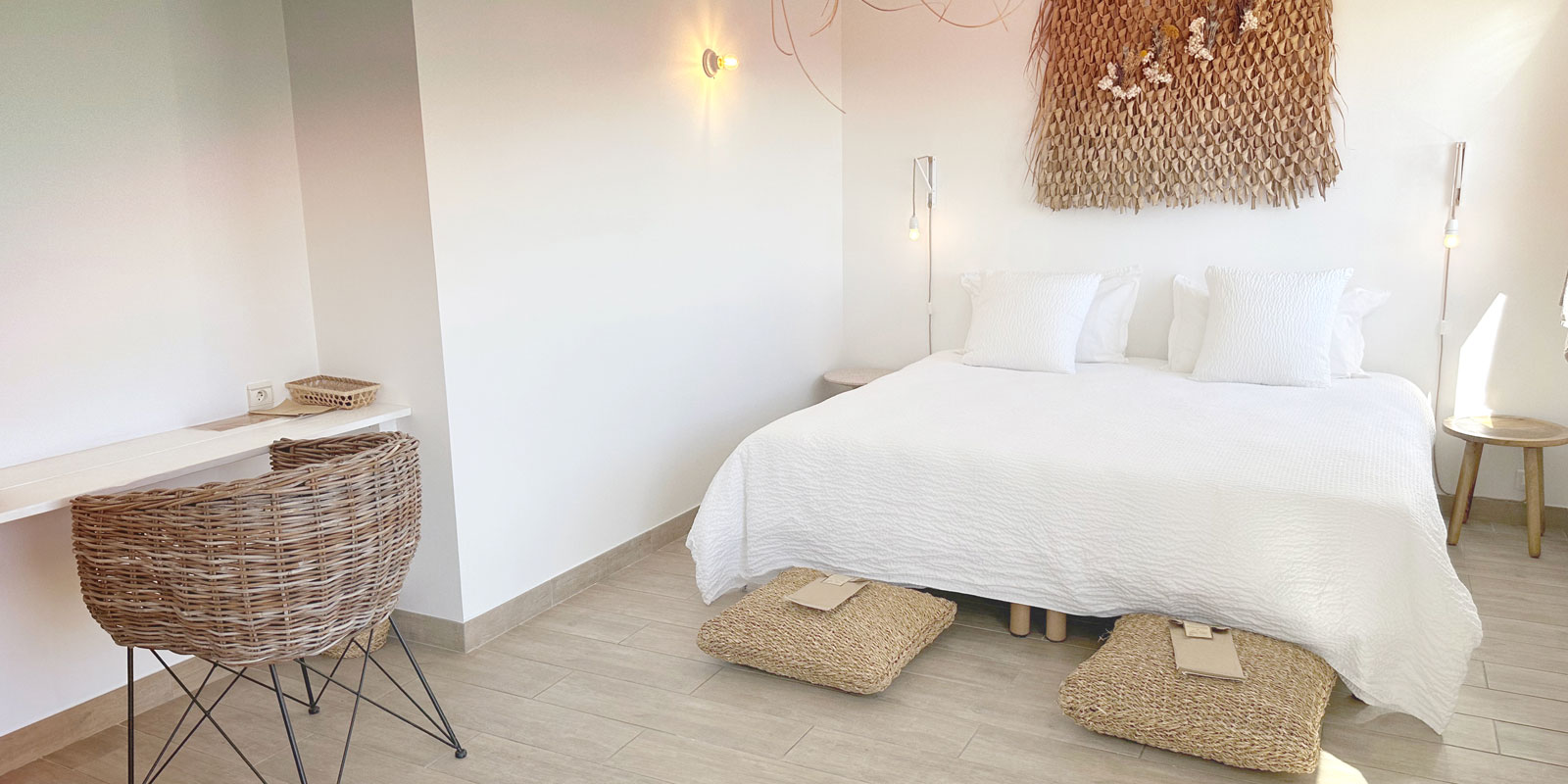 Située à l’étage supérieur, la grande chambre double supérieure avec terrasse est spacieuse et lumineuse.